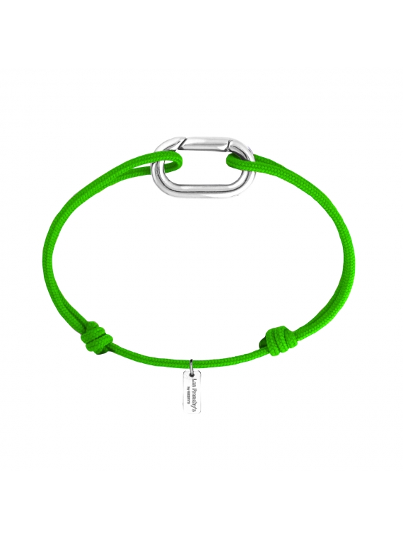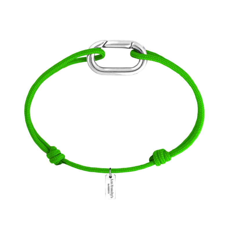 Maillon type mousqueton en acier inoxydable sur cordon polyester taille homme ajustable par noeuds coulissants, livraison en colissimo sous 48 à 72h.